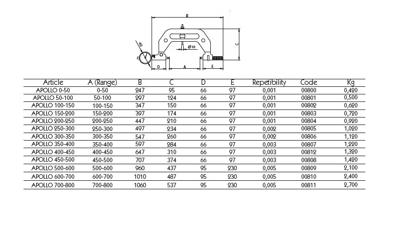 碳纖維千分尺,標配百分表和3mm測針,輕合金配件,量程:5mm,可更換直徑3.5mm測針,帶有包裝木箱。