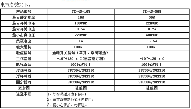 不銹鋼浮球開關(guān)產(chǎn)品規(guī)格: